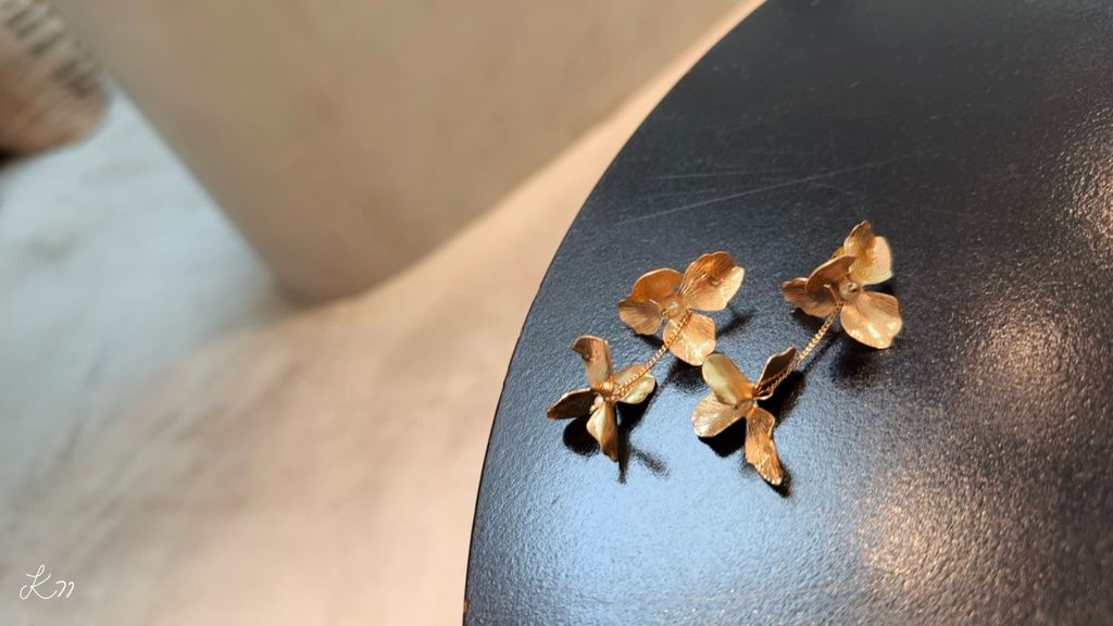 金屬霧面垂吊花朵耳環